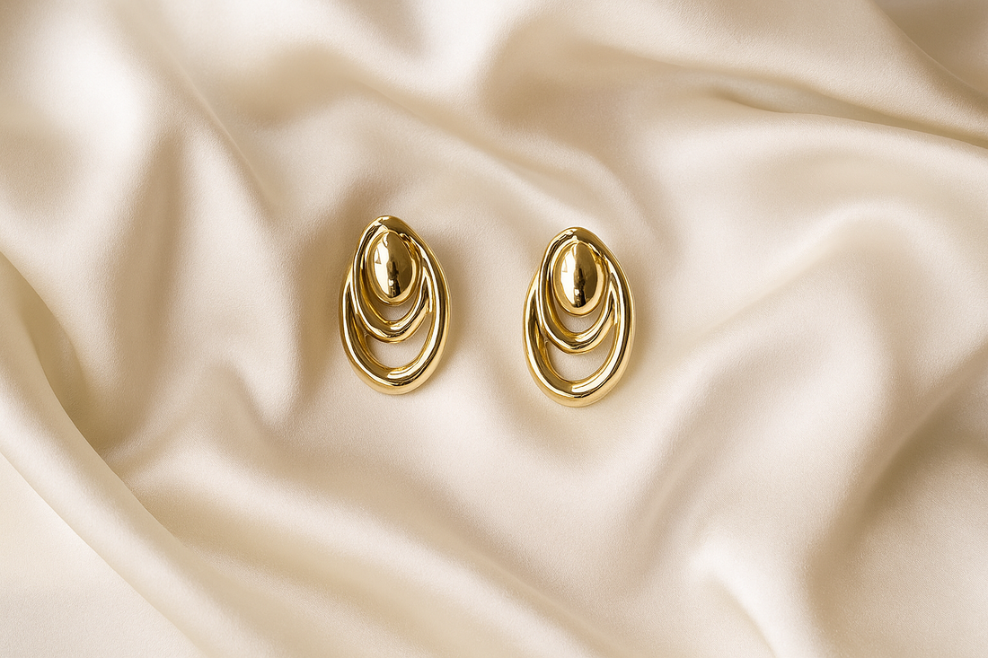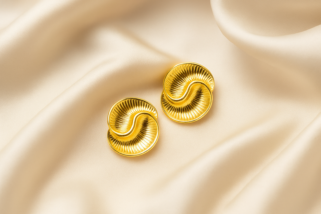 Aurelia Fold Earrings – Gold Sculpted Petal Earrings (3.5cm × 1.5cm)Crafted with a smooth, mirror-polished...