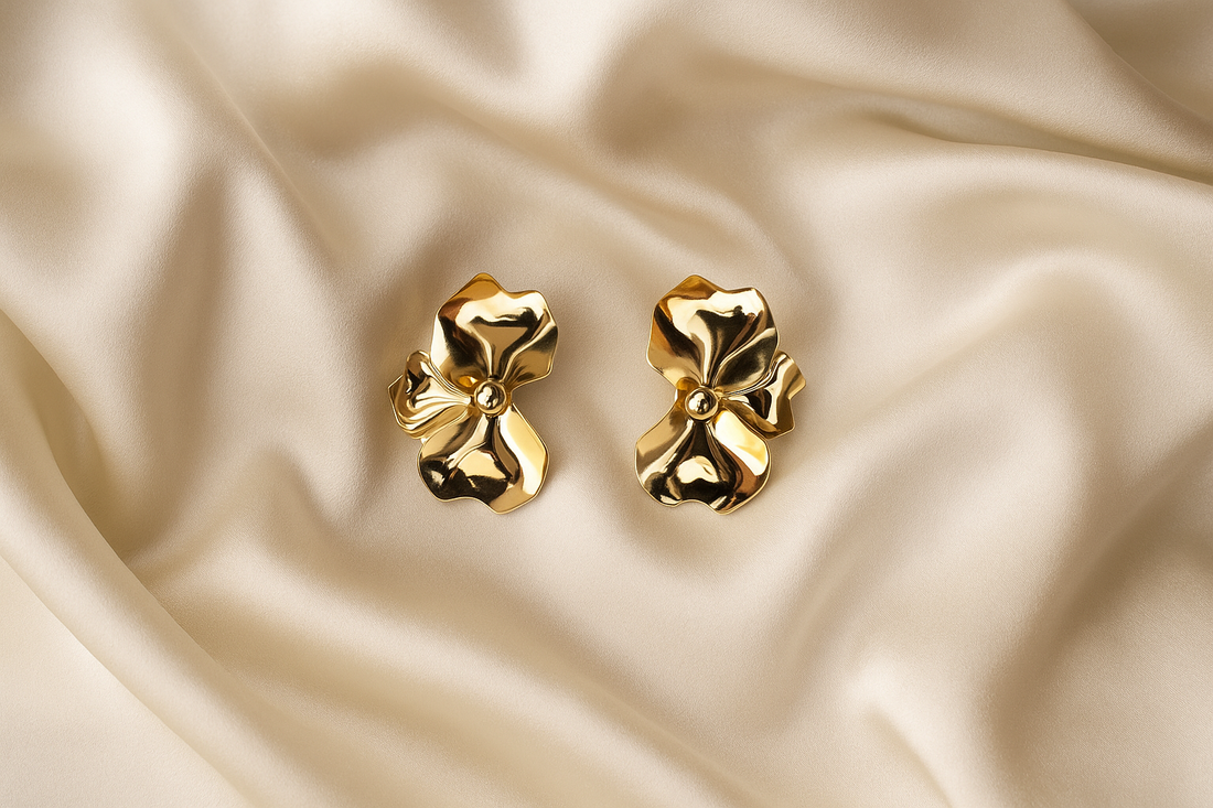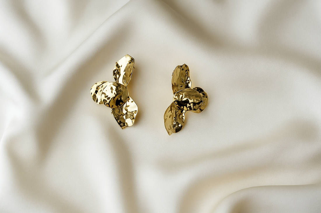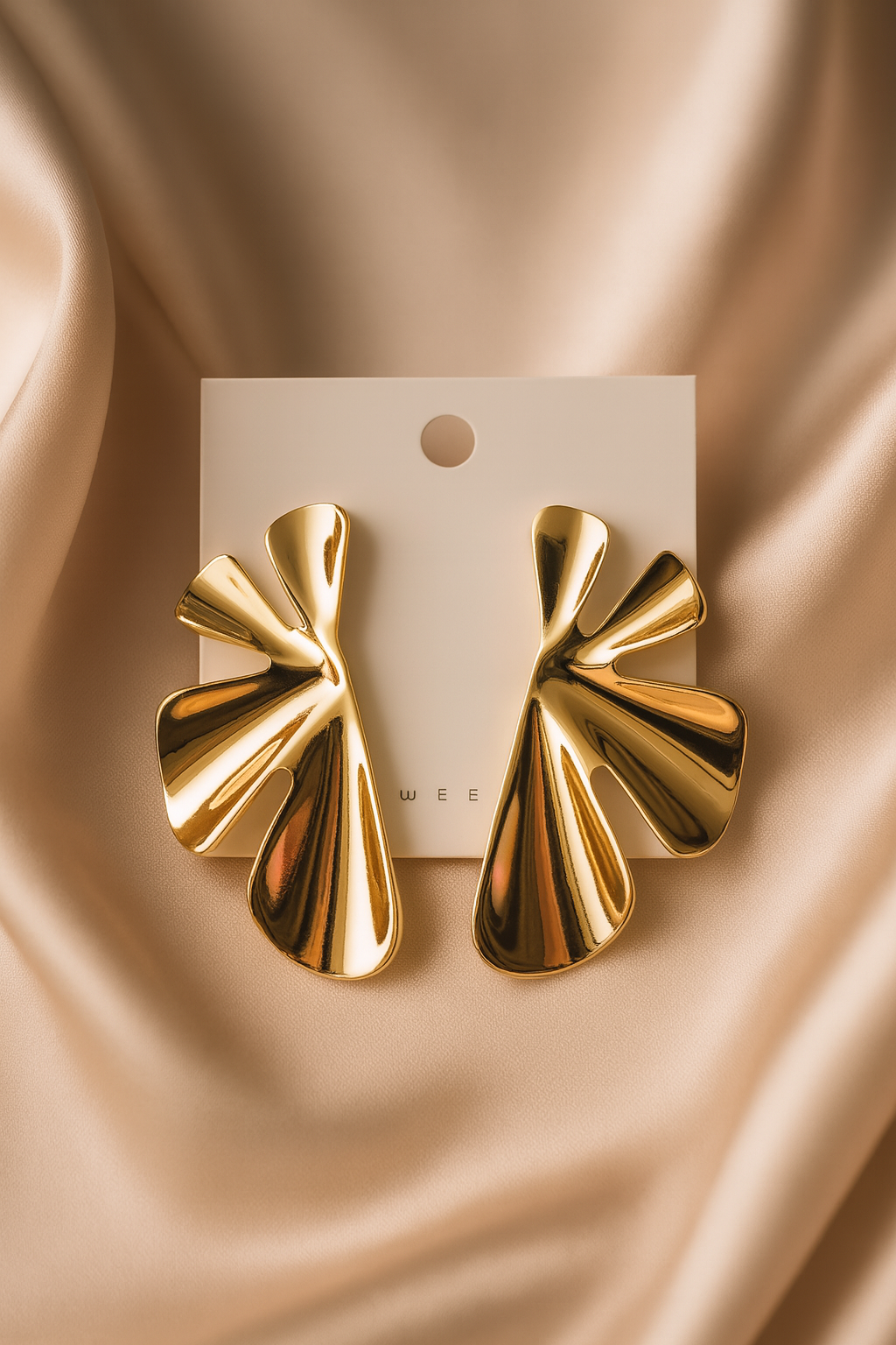Seraph Fold Earrings – Gold Sculpted Petal Statement EarringsThese gold sculpted petal earrings feature a...